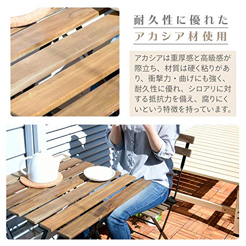 山善のガーデンファニチャーは、季節や天候にあわせて収納できる折りたたみ式です。コンパクト設計でちょっとしたスペースにも置けますよ。耐久性の高いアカシア材でできています。